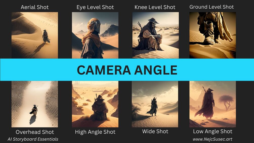 It contains a library of words and modifiers on camera angles, lighting and facial expressions, as well as prompt engineering techniques we can use with text to image AI to create storyboard frames.