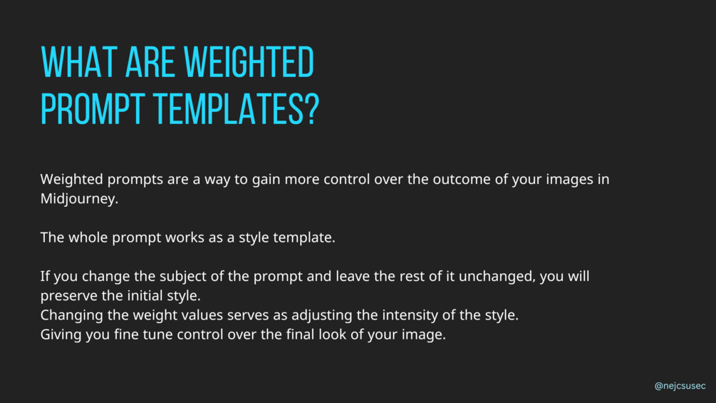 This PDF contains 16 weighted prompt templates you can modify to keep a consistent style in your creations.